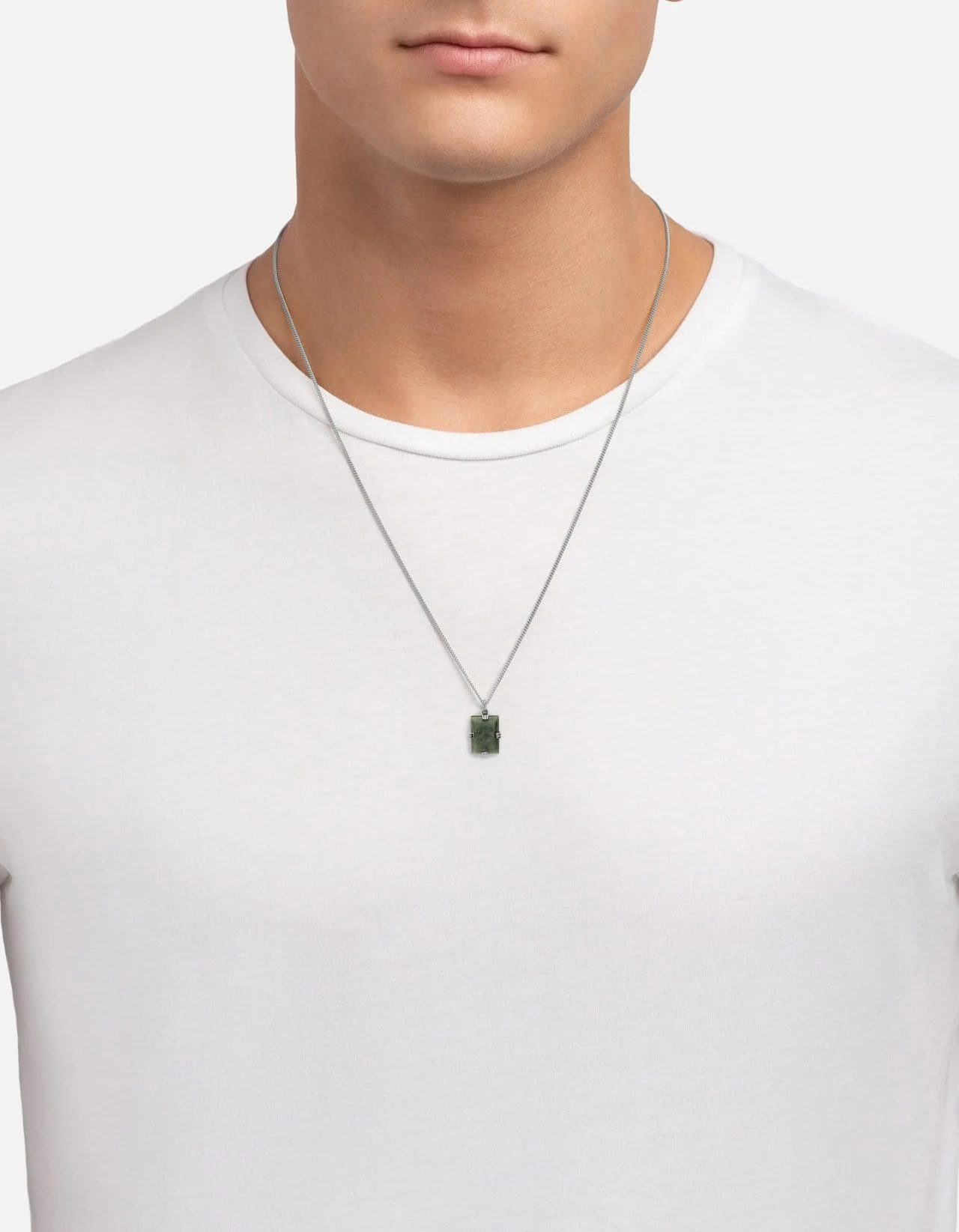 Our Lennox Pendant Necklace blends modernized materials with vintage inspired design. Green jasper is set inside a square sterling silver frame and hangs on a 24-inch chain.