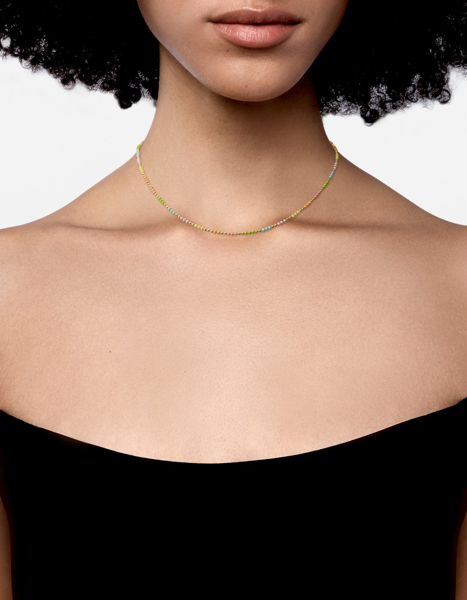 Elevate your look with the Orb 1.5mm Chain Choker, featuring pastel hues and gold vermeil blending in perfect harmony. Crafted with care, each item is enameled by hand to ensure a unique and vibrant finish.